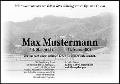 Auf 25 Seiten haben wir 510 Texte und Zitate für Traueranzeigen sorgfältig zusammen-getragen. Einfach bestellen per E-Mail oder Fax.