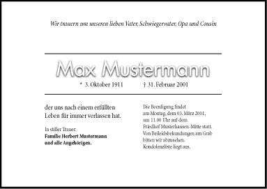Eine repräsentative Umfrage hat es nun bestätigt:Mehr als 70 % der Bestatter wünschen sich für ihre Kunden individuellere Traueranzeigen.